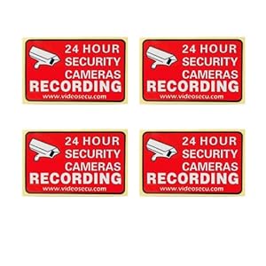 This kit contains 4 surveillance signs. Our vinyl decal of professional quality is excellent to deter theft, loitering, robbery, employee misconduct, trespassing and such with its bold white "WARNING" on the red background and a vivid picture of a security camera .The smooth plastic surface makes it weather-proof, water-proof and resistant to scratches. This vinyl decal is premium for outdoor and indoor use. It is long lasting, durable and doesn't lose its color. Whether you have a camera or not, this Decal will certainly make the would-be burglar think twice about trying to enter your home. This Decal will make sure that your security system gets noticed. Criminals will think you have security cameras even if you don't and will go away in search of an easier target.
